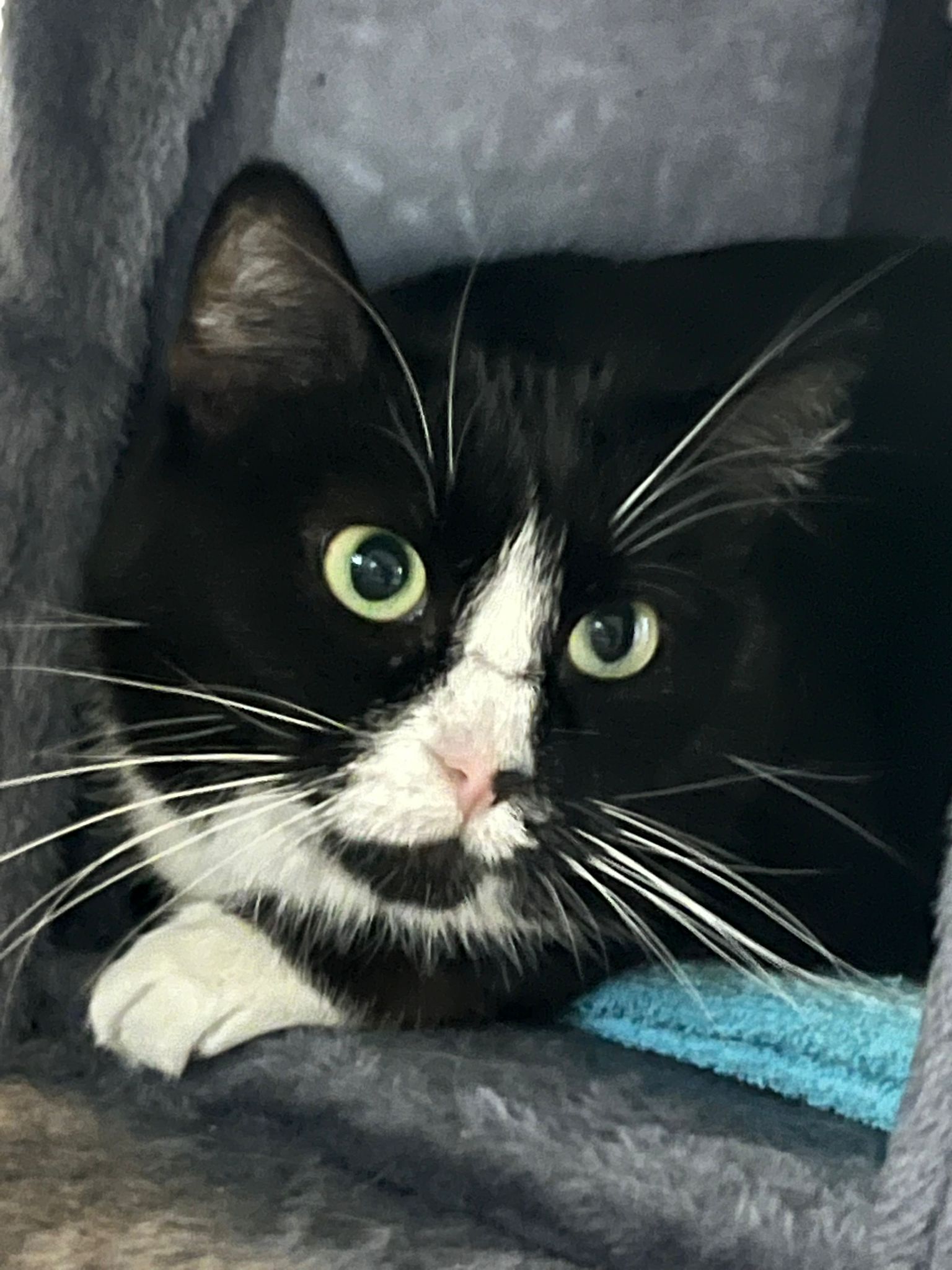 Mitte Mai vereinbarte ich einen Kennenlerntermin im Tierheim Leverkusen für Tweety. Die arme Maus saß immer noch ohne Anfrage dort. Durch einen glücklichen Zufall (Feiertag und eigentlich geschlossen) fand das erste Treffen im Foyer statt – und es funkte sofort. Nach wenigen gemeinsamen Gassirunden durfte Tweety schon probeweise bei mir einziehen. Nur eine musste noch ihr Okay geben: meine Katzenprinzessin Maggie.