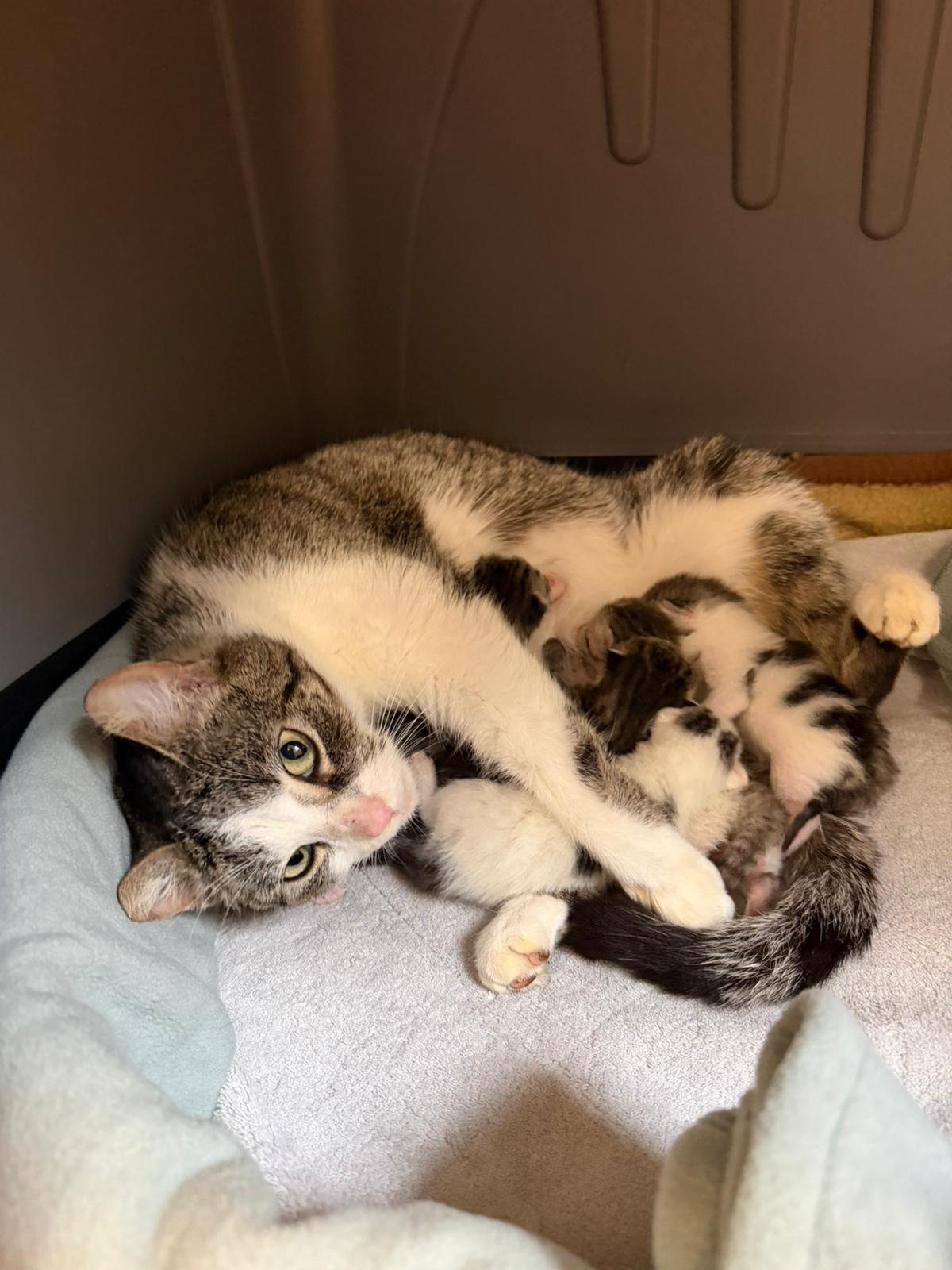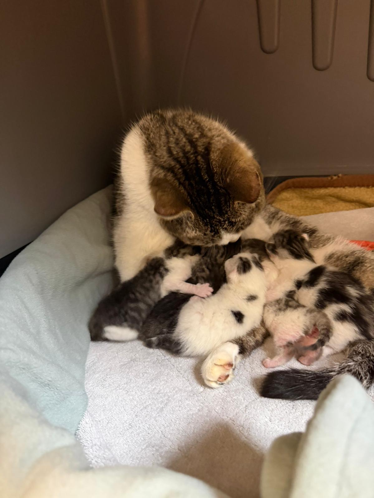 Heute geht es allen fünf Kitten gut. Die Mama umsorgt sie fürsorglich und mit ganz viel Liebe. 💛
